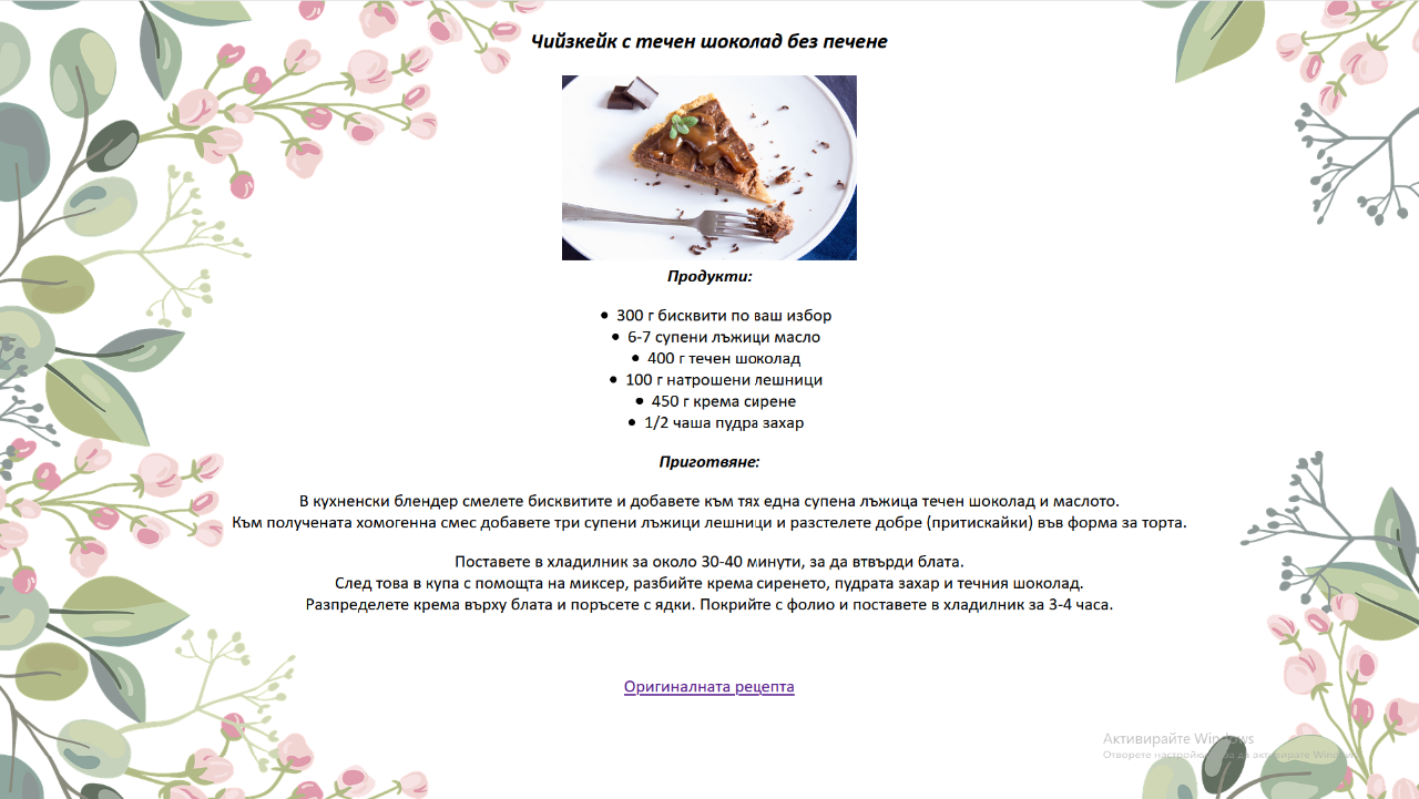 № 11 вече го е направила и страницата и изглежда страхотно! Съобразила е всичко - балансирано разположение на елементите в страницата, подходящи цветове, изображение, което отговаря на рецептата и т.н. Ето я и нея: